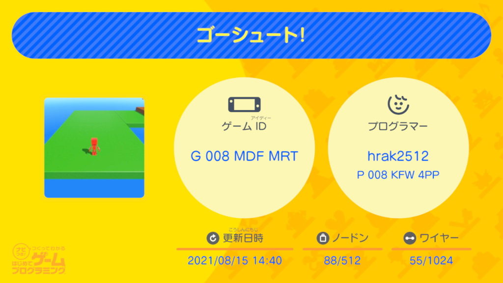ここで作ったゲームは「ゴーシュート!」という名前で公開したので良かったら触ってみて欲しい。